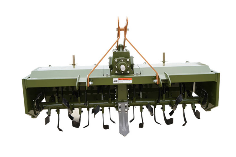 由拖拉機(jī)驅(qū)動(dòng)的耕整地作業(yè)機(jī)具,利用刀軸上旋耕刀的旋轉(zhuǎn)運(yùn)動(dòng)和機(jī)具前進(jìn)的復(fù)合運(yùn)動(dòng)對土地進(jìn)行旋耕碎土作業(yè),能一次完成耕、耙、平的作業(yè)。具有旱田碎土充分,地面平整,水田泥爛成漿,適應(yīng)性廣、作業(yè)效率高等優(yōu)點(diǎn)。