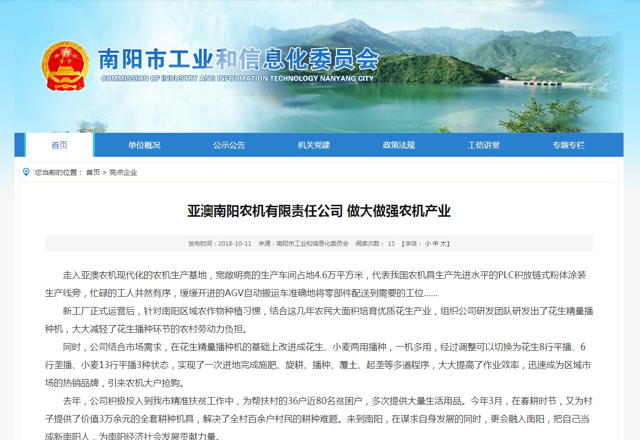 走入亞澳農(nóng)機(jī)現(xiàn)代化的農(nóng)機(jī)生產(chǎn)基地,寬敞明亮的生產(chǎn)車間占地4.6萬平方米,代表我國農(nóng)機(jī)具生產(chǎn)先進(jìn)水平的PLC積放鏈?zhǔn)椒垠w涂裝生產(chǎn)線旁,忙碌的工人井然有序,緩緩開進(jìn)的AGV自動(dòng)搬運(yùn)車準(zhǔn)確地將零部件配送到需要的工位……