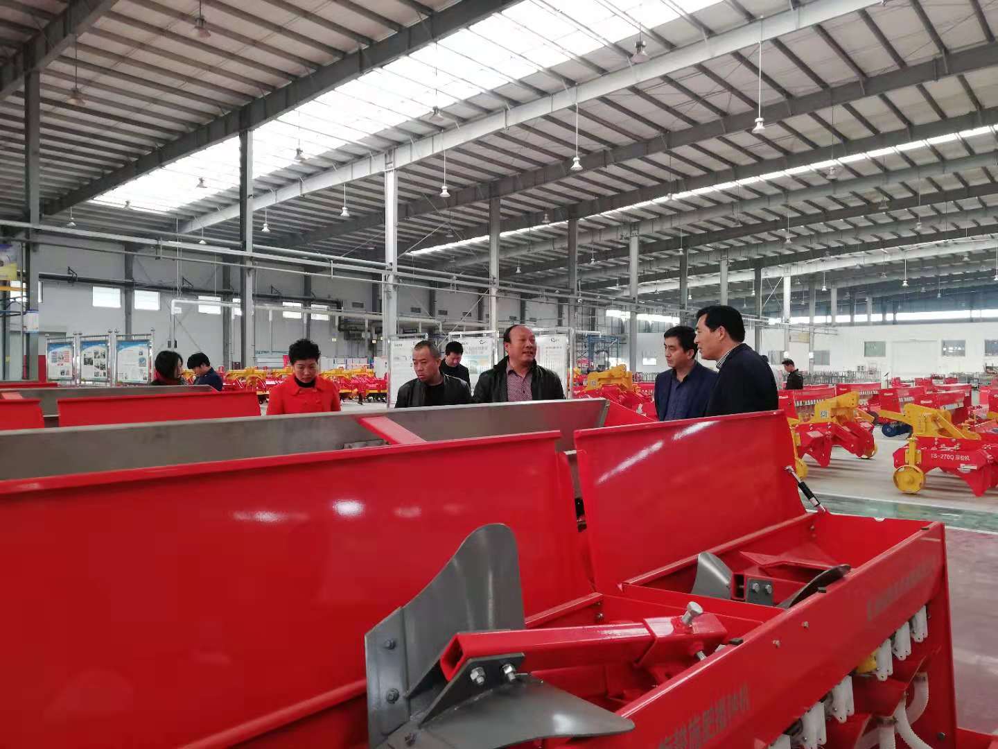 在成品展示區(qū),關(guān)于研發(fā)創(chuàng)新方面,郭總把2017年公司針對南陽地區(qū)的大面積規(guī)?;N植作物而研發(fā)的小麥花生兩用精量播種施肥機作了介紹,把產(chǎn)品特點及功能作用都作了詳細的講解。