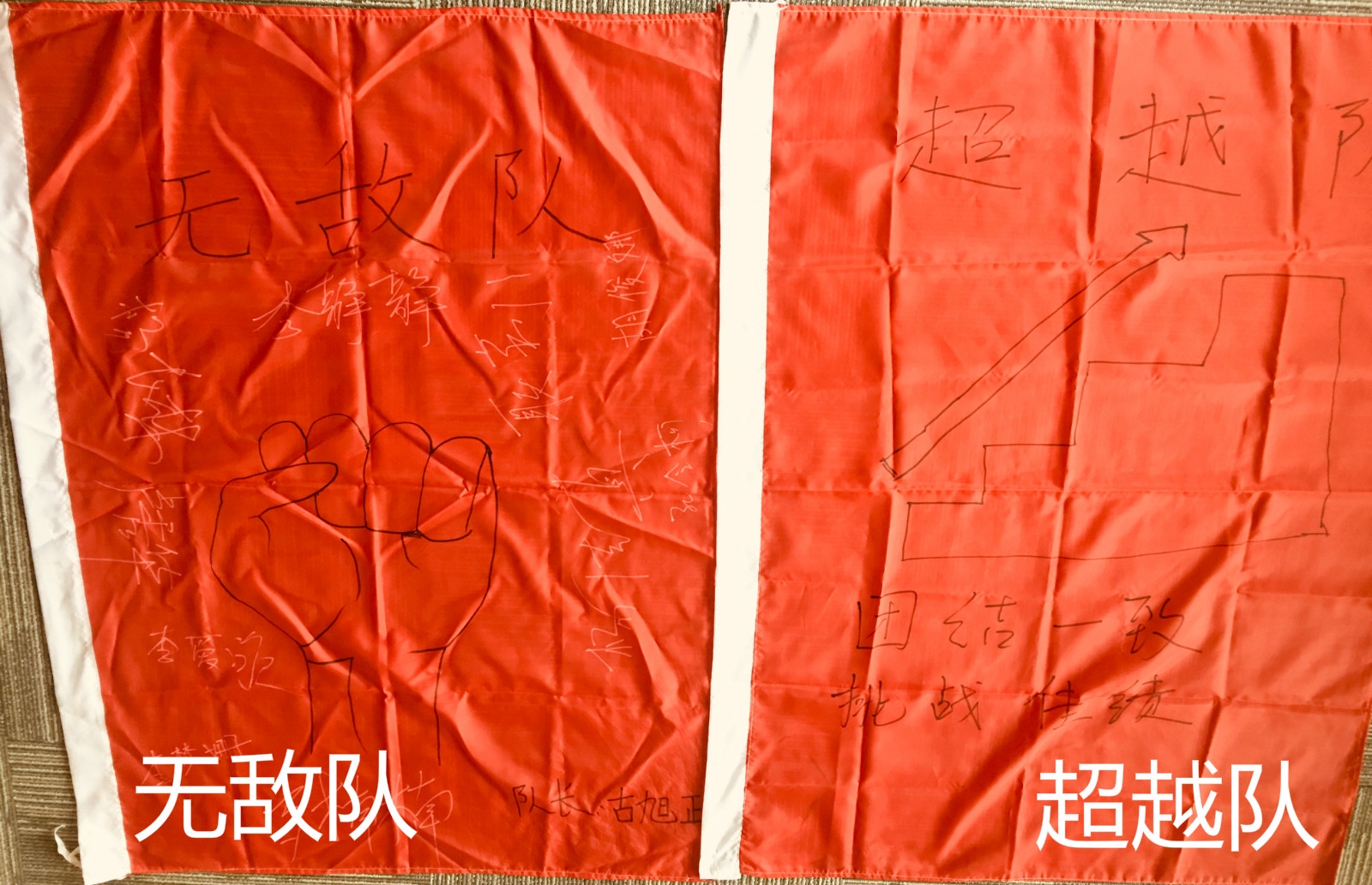 士氣展示,每組在隊(duì)長(zhǎng)的帶領(lǐng)下,繪制隊(duì)旗隊(duì)呼,并列隊(duì)進(jìn)行展示,在展示的過程中,在每一個(gè)隊(duì)員的配合下,整齊劃一,士氣滿滿。