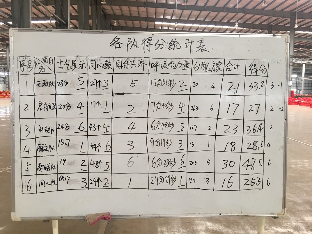 活動(dòng)開始前,通過短暫的熱身活動(dòng),打破了員工之間的隔閡,營(yíng)造了團(tuán)隊(duì)氛圍。接下來(lái),在總教練的指導(dǎo)下,全體員工分為六組在士氣展示、同心鼓、同舟共濟(jì)、呼吸的力量等幾個(gè)項(xiàng)目上進(jìn)行了比拼。