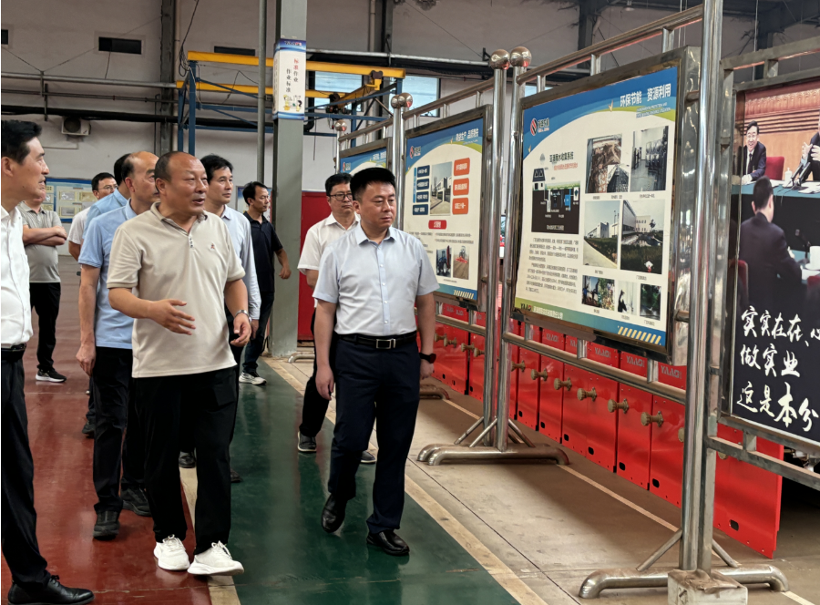 領(lǐng)導(dǎo)一行先后參觀了公司產(chǎn)品展廳、制造現(xiàn)場(chǎng)等區(qū)域,在公司副總經(jīng)理郭靖介紹下,領(lǐng)導(dǎo)們對(duì)公司產(chǎn)品智能制造過程、生產(chǎn)管理模式、綠色工廠體系發(fā)展、技術(shù)研發(fā)等做了詳細(xì)了解。