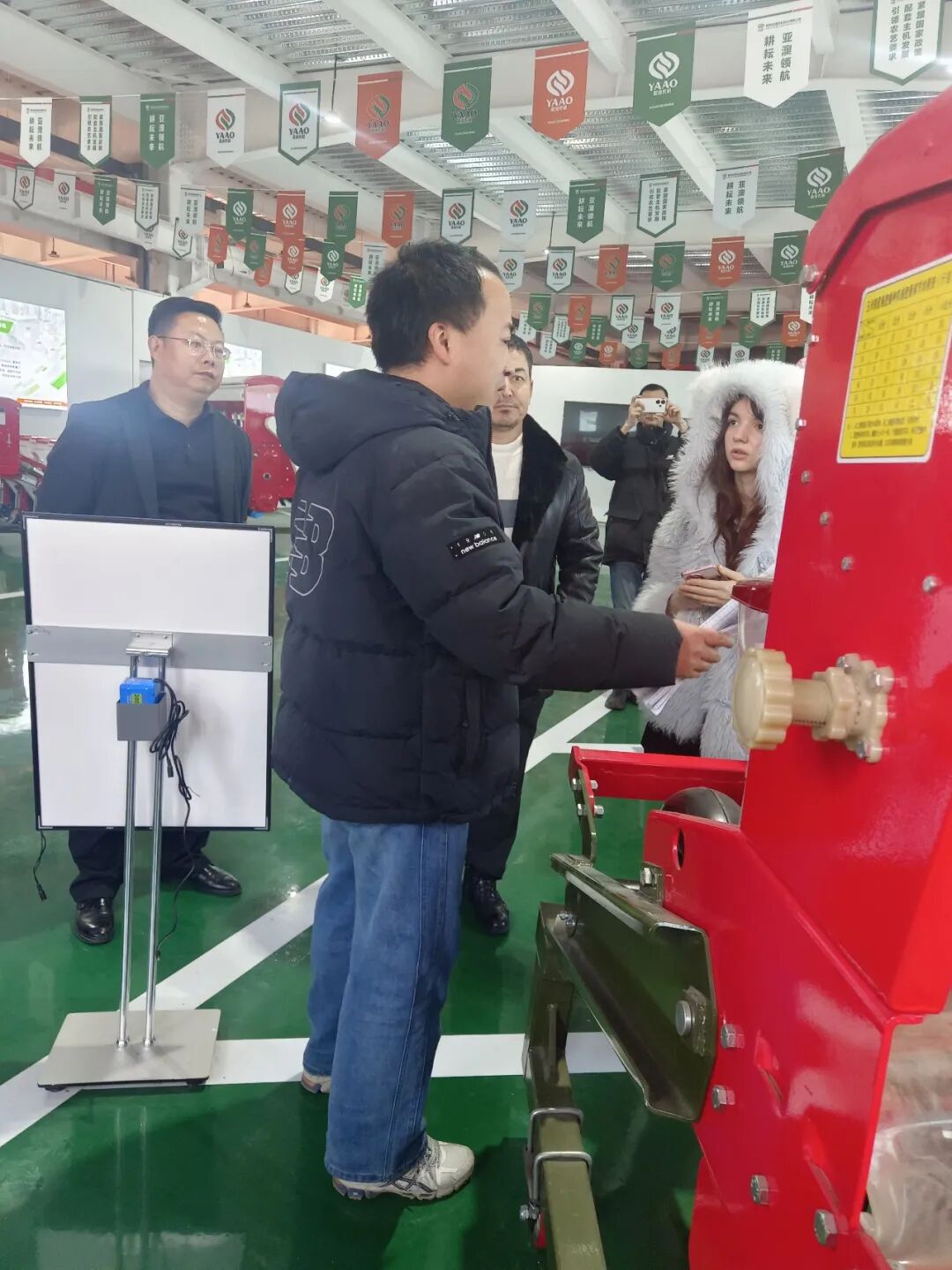 在產(chǎn)品展廳,亞澳農(nóng)機(jī)負(fù)責(zé)外貿(mào)的時(shí)馳經(jīng)理詳細(xì)介紹了公司的核心技術(shù)與產(chǎn)品優(yōu)勢(shì)。針對(duì)代表團(tuán)關(guān)注的氣吸式播種機(jī),重點(diǎn)演示了其核心優(yōu)勢(shì):搭載進(jìn)口指夾式排種器,播種精度高達(dá)95%以上,遠(yuǎn)超國(guó)家標(biāo)準(zhǔn);創(chuàng)新采用梯堵裝置等專利技術(shù),可實(shí)現(xiàn)旋耕、整地、播種、施肥一體化作業(yè),適配干旱與黏濕等多種土壤環(huán)境,且能根據(jù)需求定制雙苗帶機(jī)型,完全契合烏茲別克斯坦的棉花種植需求?!拔覀兊漠a(chǎn)品在國(guó)內(nèi)小麥、玉米主產(chǎn)區(qū)可實(shí)現(xiàn)畝均增產(chǎn)10%-15%,作業(yè)成本降低30%以上,相信在烏茲別克斯坦也能發(fā)揮同樣的效益。”時(shí)馳經(jīng)理的介紹讓代表團(tuán)成員頻頻點(diǎn)頭。