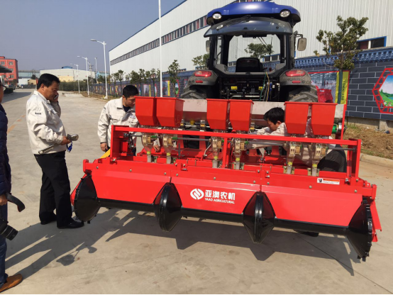 唐河縣土地面積250多萬畝,花生種植面積60多萬畝。為了推進唐河花生種植面積能夠進一步擴大,縣政府指示依托縣農(nóng)機產(chǎn)業(yè)園亞澳農(nóng)機生產(chǎn)、研發(fā)專門用于花生種植、收獲的機械。亞澳今天投放市場的花生精量播工作效率相當(dāng)于60人的工作量,已成為春耕的主力軍。在上屯鎮(zhèn)演示會現(xiàn)場,隆隆的機聲中,四臺不同規(guī)格的花生精量施肥播種機同時作業(yè)。所到之處,能夠一次性完成播種、施肥、起壟等多道工序,實現(xiàn)了多壟多行寬幅聯(lián)合播種作業(yè)。