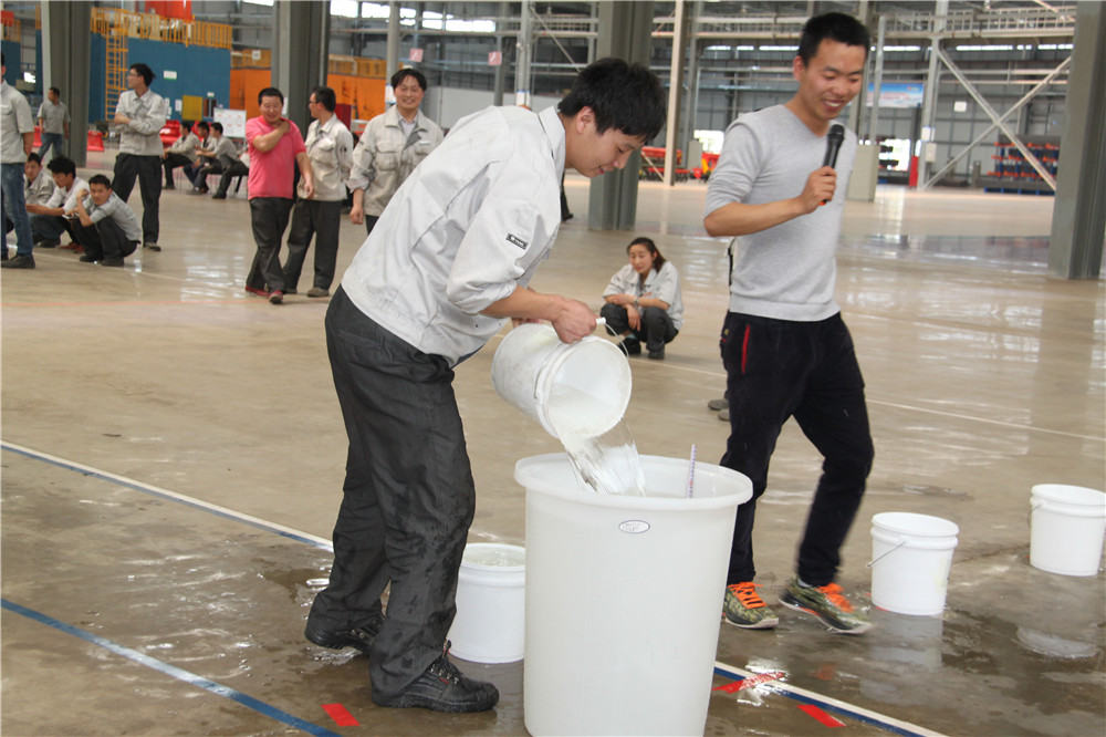 下午13:30在運(yùn)動(dòng)場(chǎng)出現(xiàn)了擺放有序的水桶,這是我們的第二項(xiàng)活動(dòng):精益運(yùn)輸大接力,取水點(diǎn)的距離分別大于等于10米,每個(gè)桶分別裝滿(mǎn)10L水,每組隊(duì)員是五個(gè)人,要在120秒內(nèi)完成大桶水量的收集,超過(guò)120秒的隊(duì)員淘汰出局,在規(guī)定的時(shí)間內(nèi),水量收集多者獲勝,抽簽決定出場(chǎng)順序,這項(xiàng)活動(dòng)是讓員工明白精益化生產(chǎn)體系的精髓所在之處;減少過(guò)程浪費(fèi),實(shí)現(xiàn)低成本的快速交付,滿(mǎn)足客戶(hù)的同時(shí),做到細(xì)節(jié)控制,提升產(chǎn)品使用價(jià)值,提升公司盈利空間。比賽開(kāi)始了只見(jiàn)隊(duì)員雙手提起20L的水往下一站的隊(duì)友那里送,中間會(huì)有灑水會(huì)很累,但是每個(gè)人都為了自己隊(duì)伍的榮譽(yù)拼盡全力向終點(diǎn)奔去,旁邊的隊(duì)友為他們加油、吶喊,最終自焊獲得第一名。