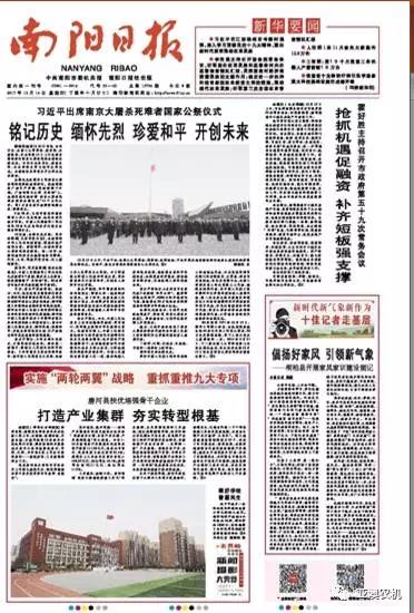 2017年 12月14日,南陽(yáng)日?qǐng)?bào)頭版報(bào)道唐河產(chǎn)業(yè)發(fā)展,我公司榜上有名。以下為報(bào)道全文。